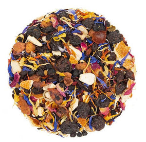 Ingredients: Elderberry & Currant, Hibiscus petals, Apple, Rosehip & Orange, Cornflower, Rose, Calendula & Safflower petals, Natural flavors.