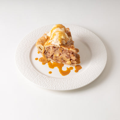 A classic homemade apple pie crafted with tender, spiced apple filling encased in a flaky crust and topped with a streusel crumble. Served à la mode.