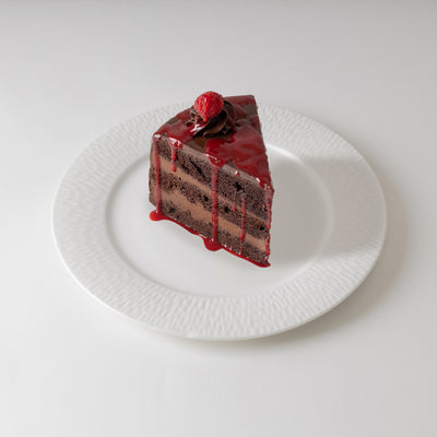 Decadent layered chocolate cake generously coated with smooth, velvety chocolate ganache and Raspberry Coulis.