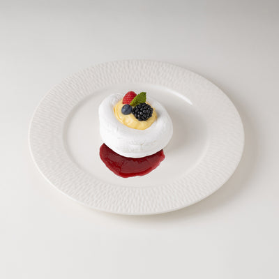Light and crisp meringue filled with homemade lemon curd, fresh seasonal berries and a raspberry coulis.