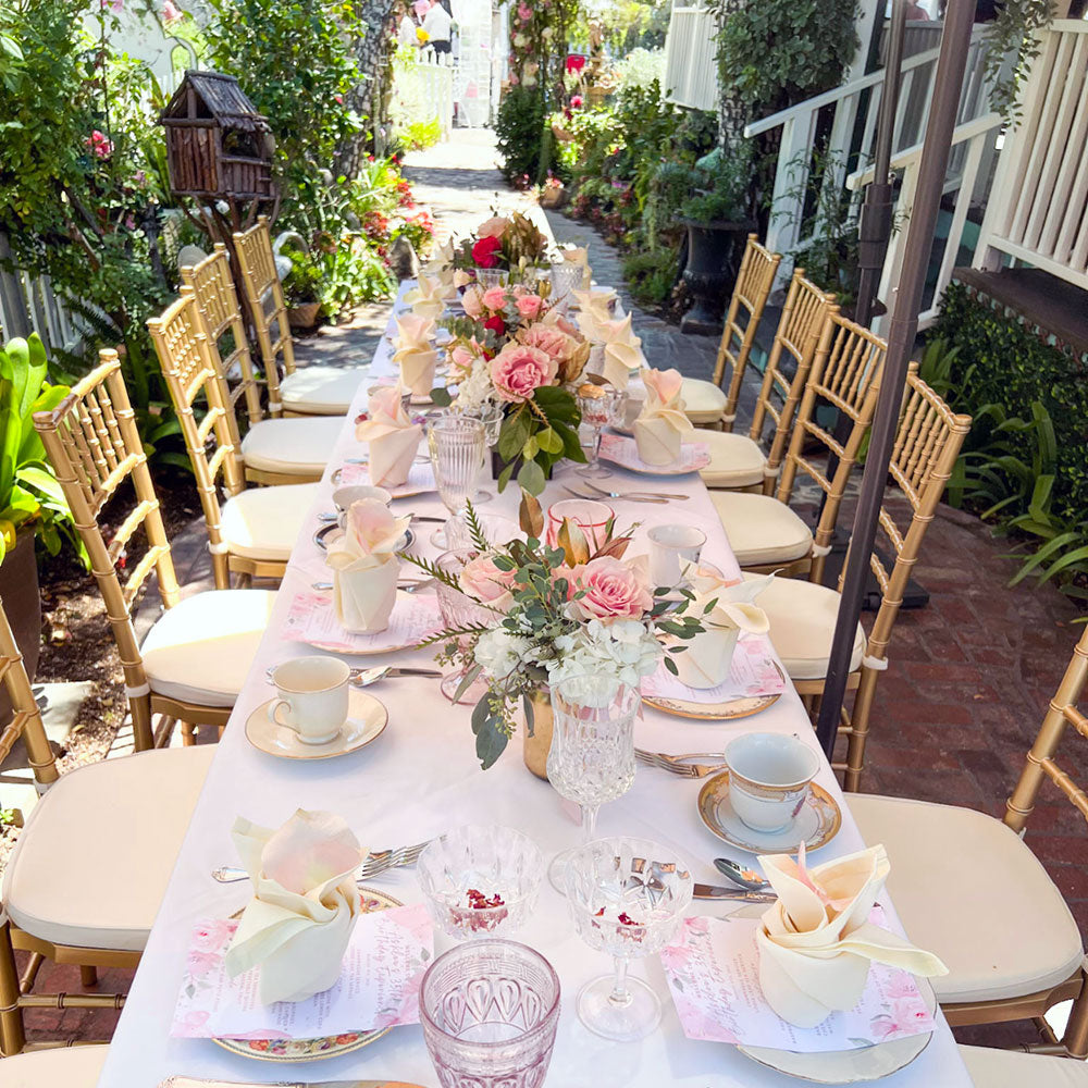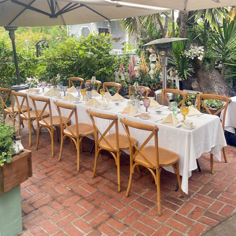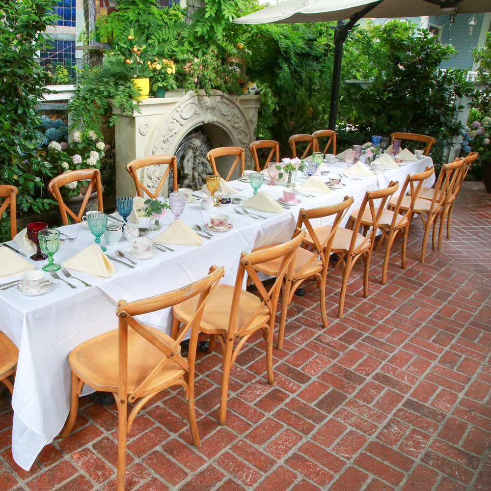 Let the historic charm of California's oldest neighborhood enhance the magic of your life's most cherished occasions. The Tea House on Los Rios, nestled in this idyllic setting, offers a variety of picturesque event spaces perfect for any celebration, from intimate soirees to grand galas. Imagine dining under the canopy of a majestic 150-year-old sycamore tree or enjoying the cozy elegance of our cottage's private rooms. Our dedicated planners are committed to bringing your unique vision to life, ensuring that every detail reflects your individual style and preferences. At The Tea House on Los Rios, every event is bespoke, designed to create unforgettable memories tailored just for you.