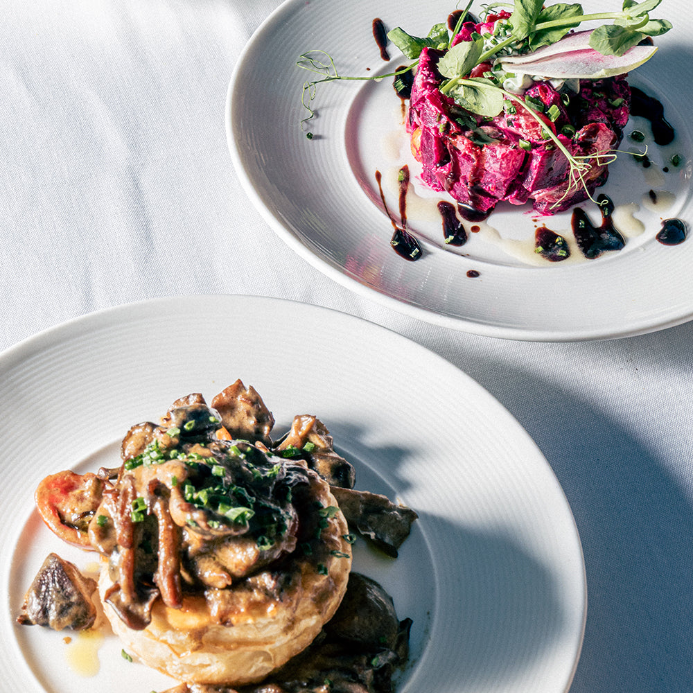 Our Valentine’s Candlelight Dinner is a romantic, candlelit evening in our historic cottage, created for connection and good conversation. You’ll enjoy a four-course dinner made to be savored, with each dish thoughtfully prepared and beautifully served.