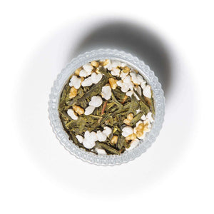 This unique Japanese tea consists of premium green tea leaves from the Kagoshima Prefecture and roasted popped broom rice, creating a warm, nutty, and savory cup of tea.